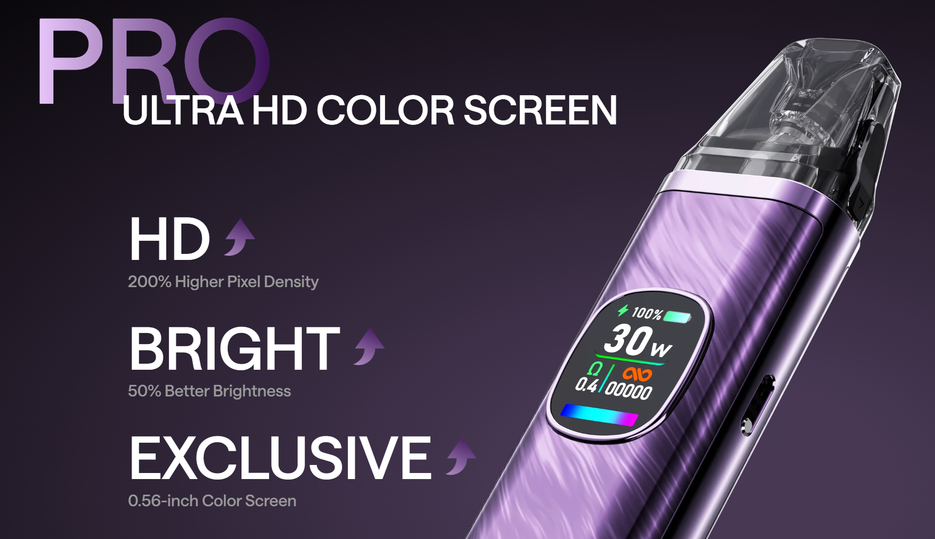 Its 0.56-inch Ultra-HD color screen is a game-changer, providing a bright, clear display with 200% higher pixel density and 50% better brightness than other models. Available in multiple colors, such as Dream Purple, Platinum Gray, and Coral Pink, the XLIM PRO 2 offers a visually stunning vaping experience that sets it apart.