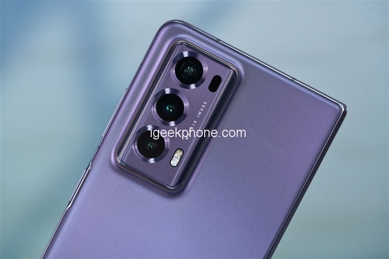In the center above, the outer screen has a hollowed-out 16-megapixel wide-angle front camera. The color we got from Kuaitech is velvet purple, and the back of the fuselage is made of AG matte glass body, which feels very smooth to the touch.