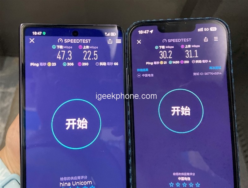 After our test in the elevator, the download speed of the Honor Magic V2 was 47.3Mbps, which was 56.6% faster than the 30.2Mbps of the iPhone 13 Pro.