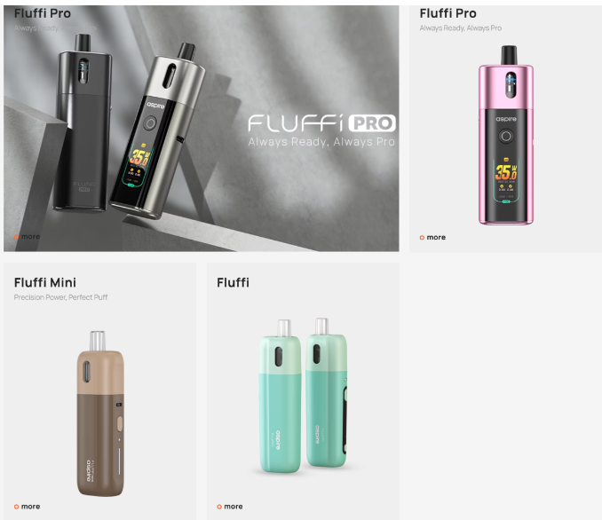 Aspire, the e-cigarette brand under Yi Jiating Technology, recently unveiled a new open-system e-cigarette, the Aspire Fluffi Pro, on its official website. According to the site, the device supports three activation modes: draw-activated, button-triggered, or a combination of both. The Aspire Fluffi Pro is now available through select online channels in Switzerland, Italy, and France, with a retail price of approximately €24.5.