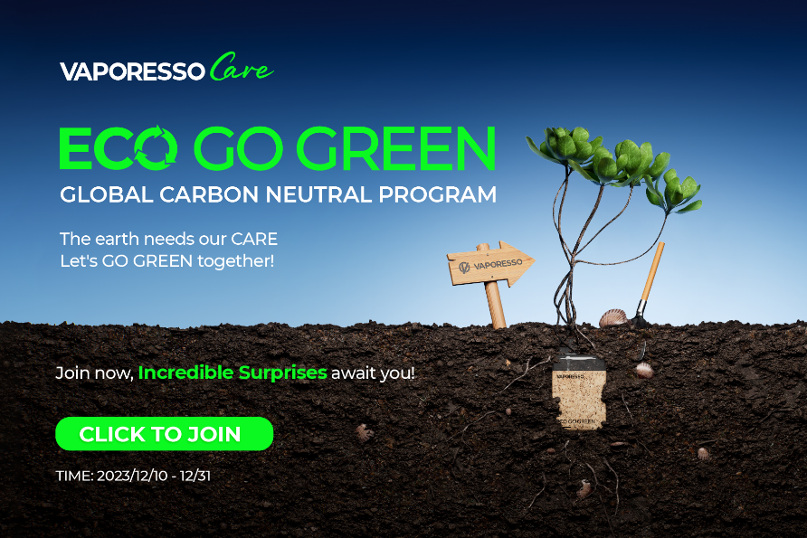 SEHNZHEN, Dec. 10, 2023 /PRNewswire/ — On December 10, VAPORESSO, a leading brand in the vaping industry, has officially launched its new initiative, the 2023 VAPORESSO CARE ECO GO GREEN – Global Carbon Neutral Program (“the Program”). This Program, slated to continue until July 2024, is the first carbon-neutral green practice in the vaping industry, aiming to demonstrate VAPORESSO’s innovative efforts towards sustainable development in the age of carbon neutrality and underscore its pivotal role in the industry as a trailblazer for sustainable practices.
