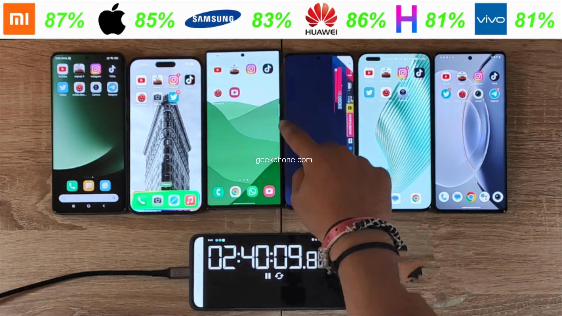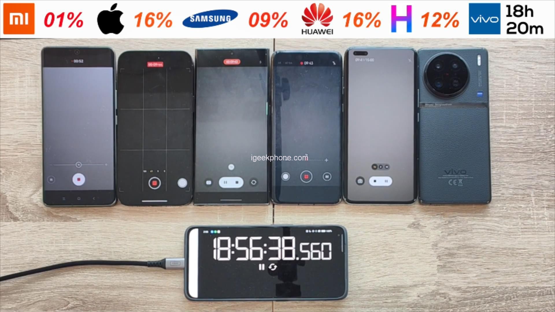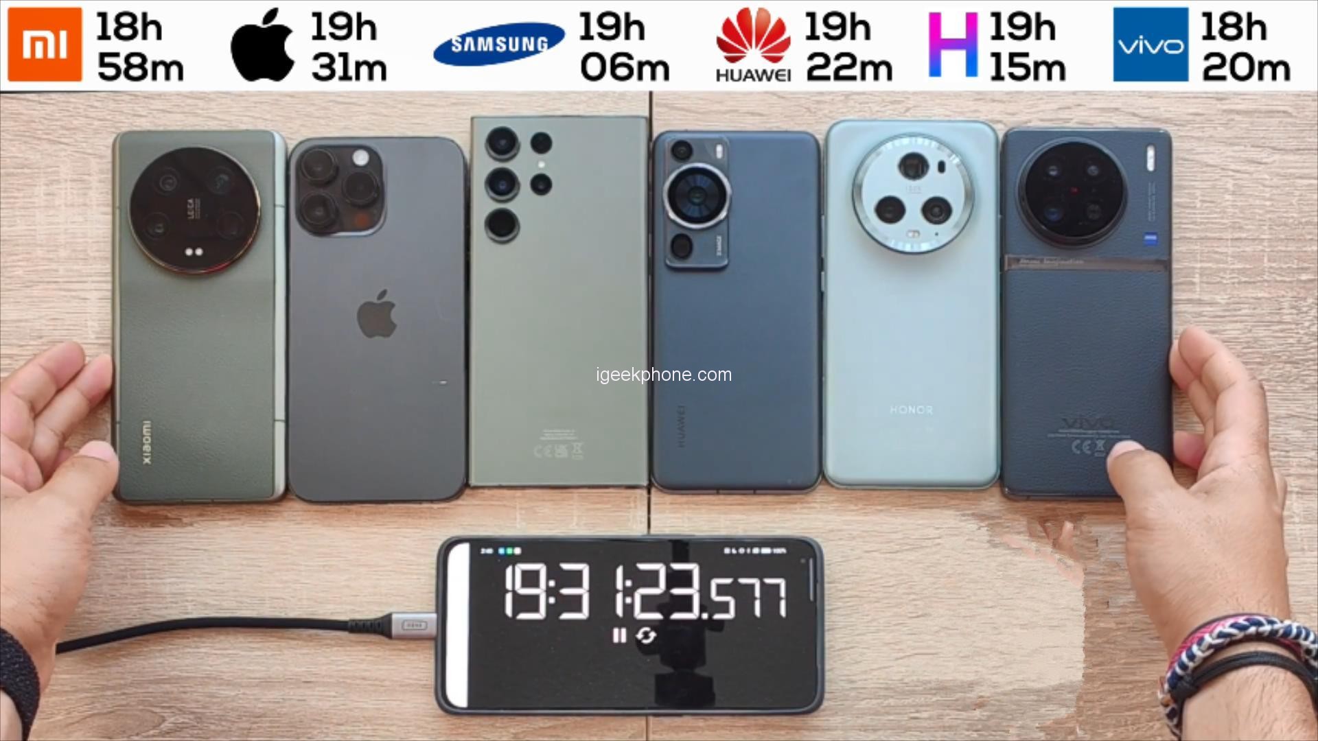 Fifth place went to the Xiaomi 13Ultra, with a battery life of 18 hours and 58 minutes.