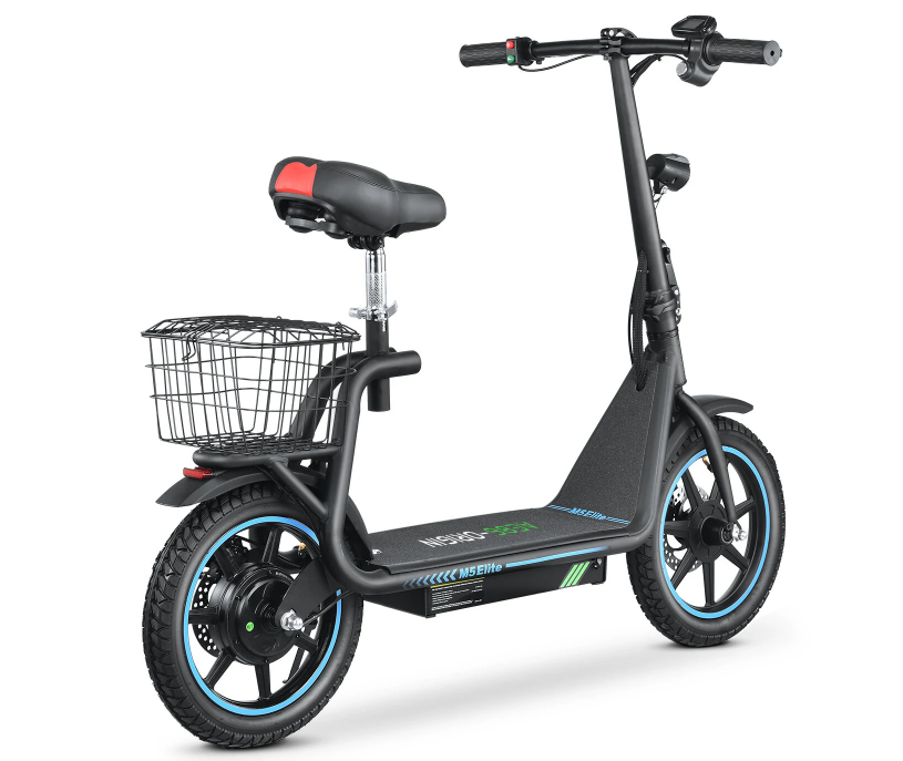 The inclusion of a seat on the M5 Elite Electric Scooter adds an extra layer of comfort for longer rides. The scooter’s design is user-friendly, with features such as a 14-inch tire size that provides a smooth ride and excellent traction on various surfaces.