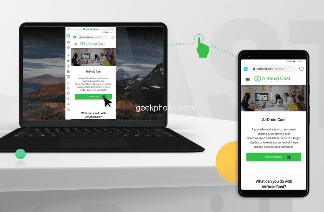 Using AirDroid Cast, you can easily browse the internet and display it on your PC Screen. Your laptop becomes a web screen mirror and allows you to visit your phone screen on the browser. If you ever want to read an article and do some research on your phone; click on AirDroid Cast and start mirroring your web browser. This will also enable you to control your phone using your laptop very quickly.