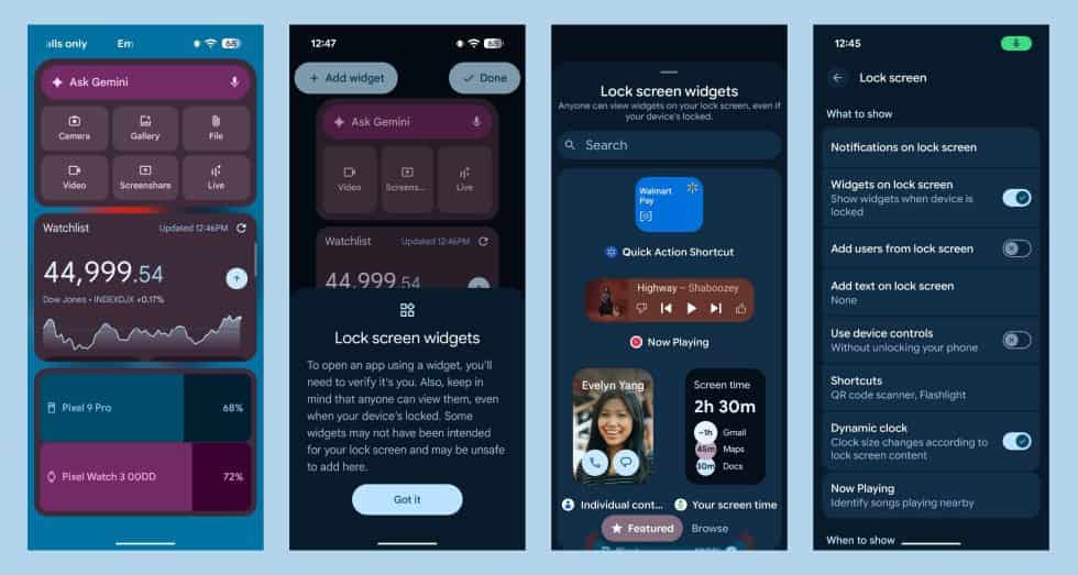 Android 16 QPR2 brings back the lock screen widget. Users can enable the “Lock Screen Widget” option in the lock screen Settings. After that, they can access and edit the widget by swiping the lock screen interface to the right. However, Google reminds users to pay attention to privacy issues, as anyone can access these widgets by swiping.