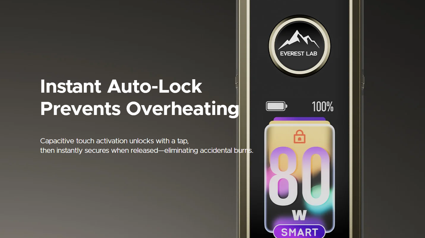 What sets the VOOPOO DRAG X3 apart—and a key reason it earned the Annual Award—is its 1.66″ smart touchscreen. This expansive view offers ultra-HD clarity with vibrant colors, turning every interaction into a seamless experience. Enhanced touch responsiveness provides instant feedback, whether you’re adjusting wattage from 5-80W or navigating output voltage between 3.2-4.2V. But safety is paramount: the capacitive unlock sensor introduces instant auto-lock to prevent overheating and accidental activations. With multiple unlocking options, it’s designed for every situation—tap to unlock, release to secure, eliminating burns and ensuring peace of mind.