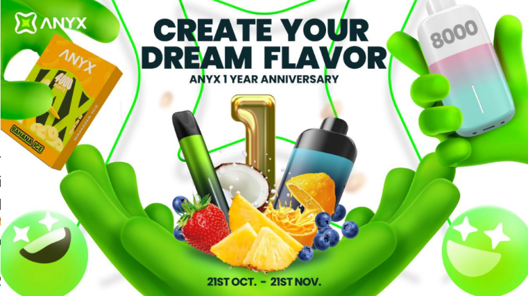 Pod system expert ANYX is marking its first anniversary by offering a special gift to its fans and users. The brand has initiated a voting campaign, allowing vapors to determine the upcoming new flavors. The campaign was officially launched on the ANYX official website on October 21st and will run for a month, with the final results set to be announced on November 21st.