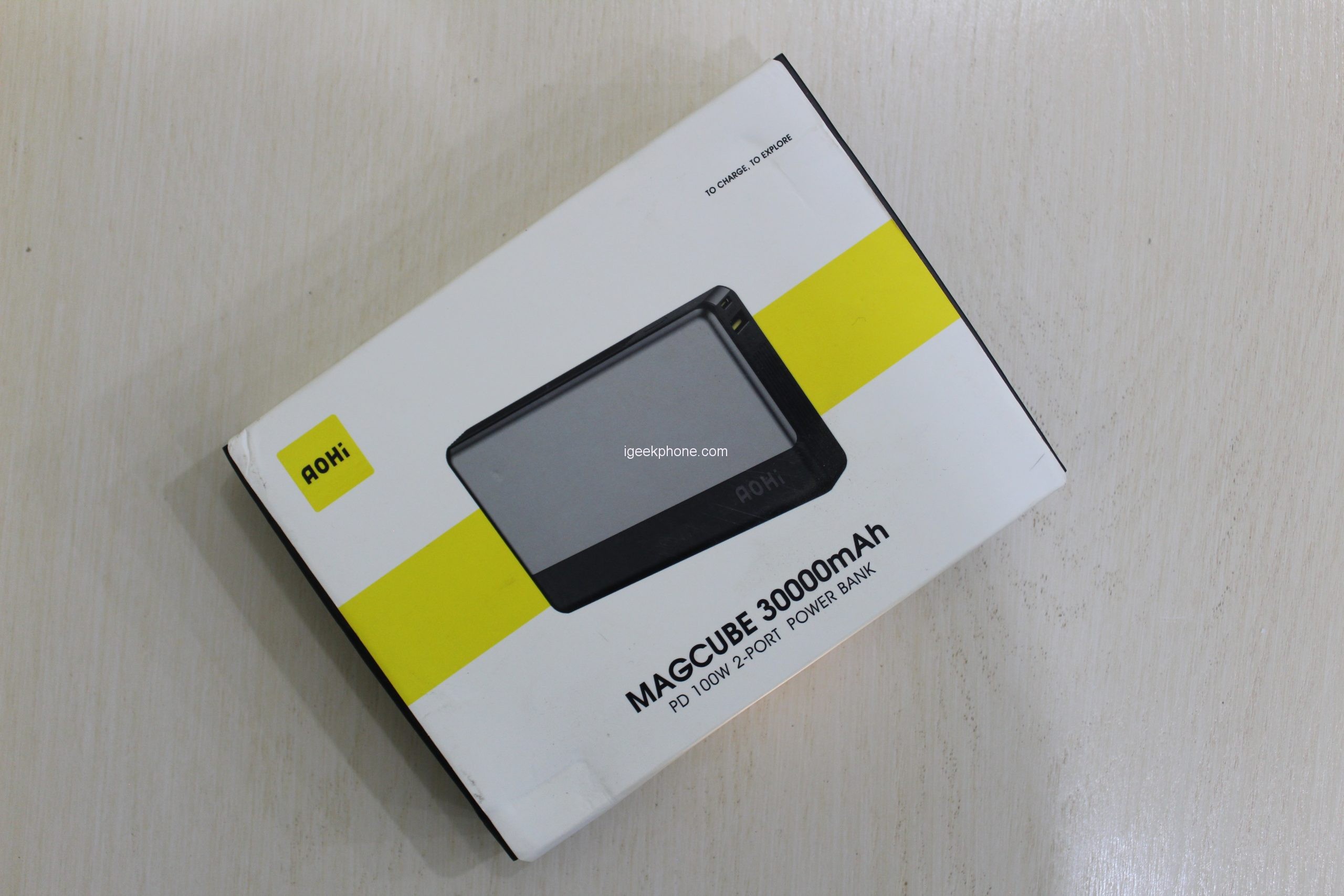 The AOHi MAGCUBE P30 packaging follows the brand’s signature simplicity in design. It prominently displays product images on the front, along with brand and product-related information. Notably, it emphasizes the 30000mAh capacity and PD100W fast charging, which are the key selling points of this powerhouse.