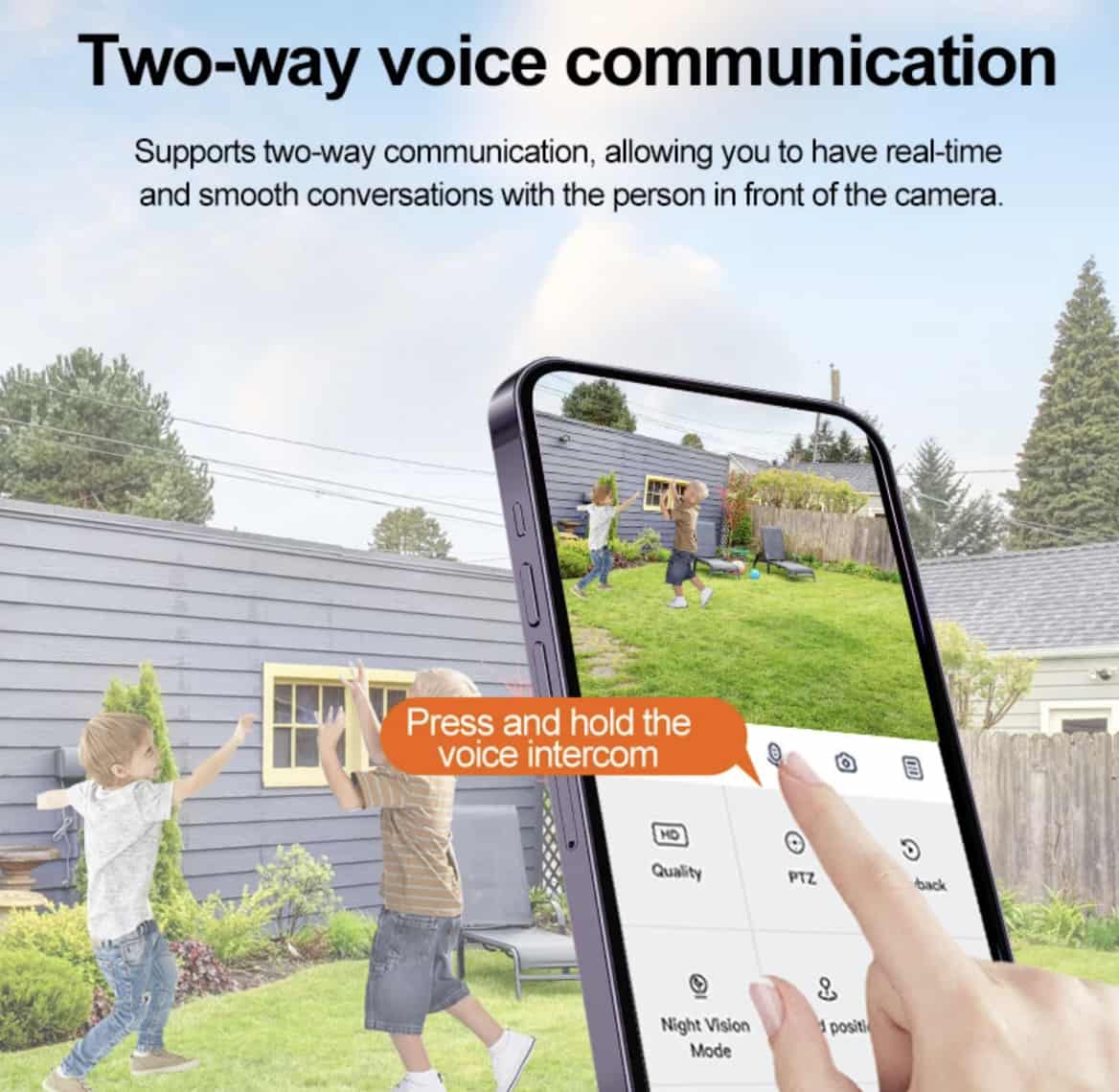 • Talk through the camera via two‑way audio