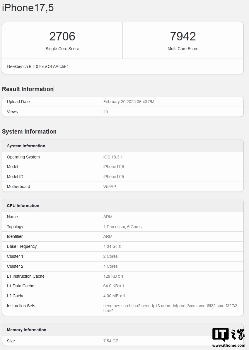 Although the iPhone 16e is not yet available for sale, it has been picked up by review media and tested on Geekbench, scoring 2706 points for single-core and 7942 points for multi-core on Geekbench 6.4.0.