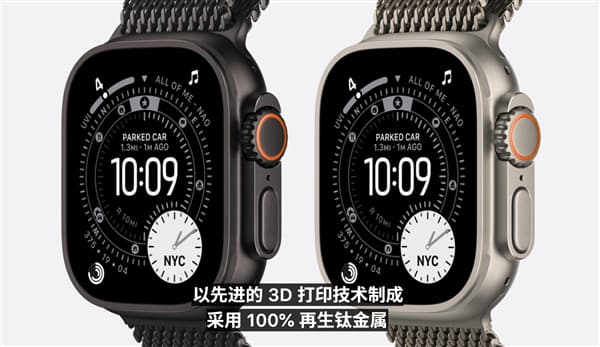 In terms of material, the Apple Watch Ultra 3 is made with advanced 3D printing technology and uses 100% recycled titanium metal, which not only ensures the durability of the watch but also responds to the concept of environmental protection.