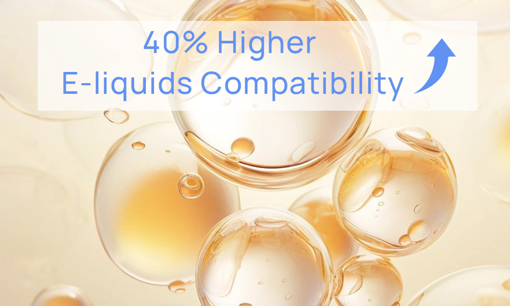 40% higher e-liquid compatibility with G-Mesh, featuring high resistance to e-liquid acidity and alkalinity for worry-free storage