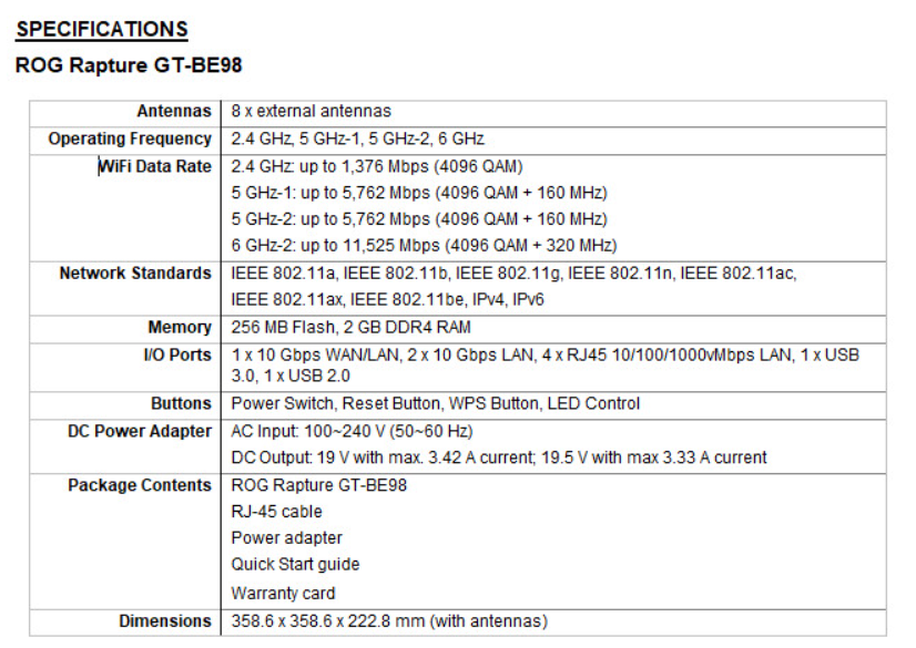 ROG Rapture GT-BE98 also supports Multi-Link Operation (MLO) and Multi-RU (Puncturing), which can provide more efficient and reliable wireless connection.