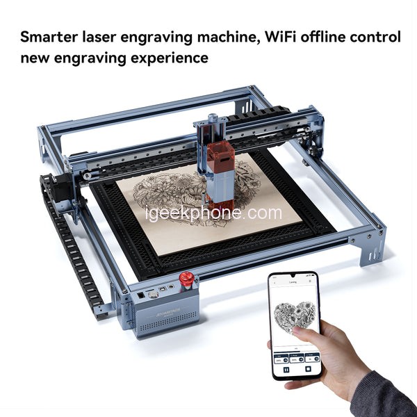 The Atomstack Maker A5 is a revolutionary engraving machine that offers enhanced speed and precision. With the latest technology, it achieves a high-speed engraving rate of 24000mm/min, which is twice as fast as previous models. Whether you’re a professional in the manufacturing industry or an individual user, this product is designed to meet your needs, improving work efficiency and reducing production time. The machine features a large working area of 400x400mm, providing ample creative space for your projects. It comes with a new 50mm long focal length light source, offering exceptional cutting ability and improving both efficiency and precision.