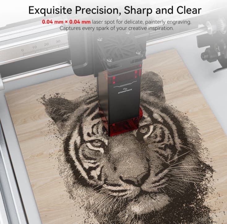 The 135x145mm engraving area offers plenty of space for your creative projects. This large working area allows you to engrave and cut larger pieces without the limitations of a smaller workspace. Whether you’re crafting small accessories or larger custom designs, the ATOMSTACK SWIFT gives you the freedom to work on a variety of project sizes.