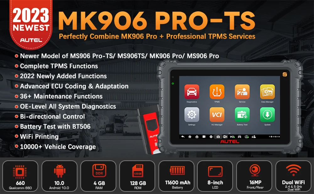 The world of automotive diagnostics and tire pressure monitoring systems (TPMS) has seen a significant leap forward with the introduction of the Autel MaxiCOM MK906 Pro-TS. Tailored for tire-repairing shops and technicians, this innovative device stands out as a high-end diagnostic scanner seamlessly blended with a TPMS programming tool. As an enhanced version of the MS906TS/MS906 Pro-TS, the MK906 Pro-TS boasts a suite of upgraded features and capabilities that set new benchmarks in automotive diagnostic technology.