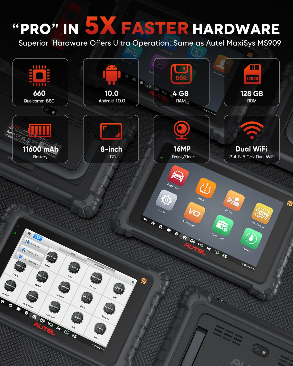 The Autel MaxiCOM MK906 Pro-TS is designed with both aesthetics and functionality in mind. It features a large 12.9-inch TFT-LCD with a crystal-clear resolution of 2732 x 2048, making it easy to read and navigate. The capacitive touchscreen enhances user interaction, providing a smooth and responsive experience. This scanner is powered by a robust Samsung Exynos8895V octa-core processor, ensuring swift and efficient performance. With 4GB RAM and a massive 256GB onboard memory, it handles extensive data and complex tasks with ease.