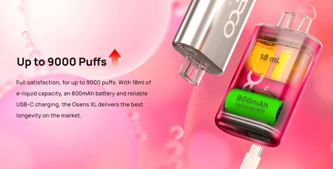 On the other hand, the Osens XL is designed for those who value longevity and robust performance. With its larger size, higher battery capacity, and substantial e-juice capacity, it promises an extended vaping experience. The 9000-puff capacity is a notable highlight, making it a great option for vapers who prefer fewer interruptions and longer-lasting satisfaction.