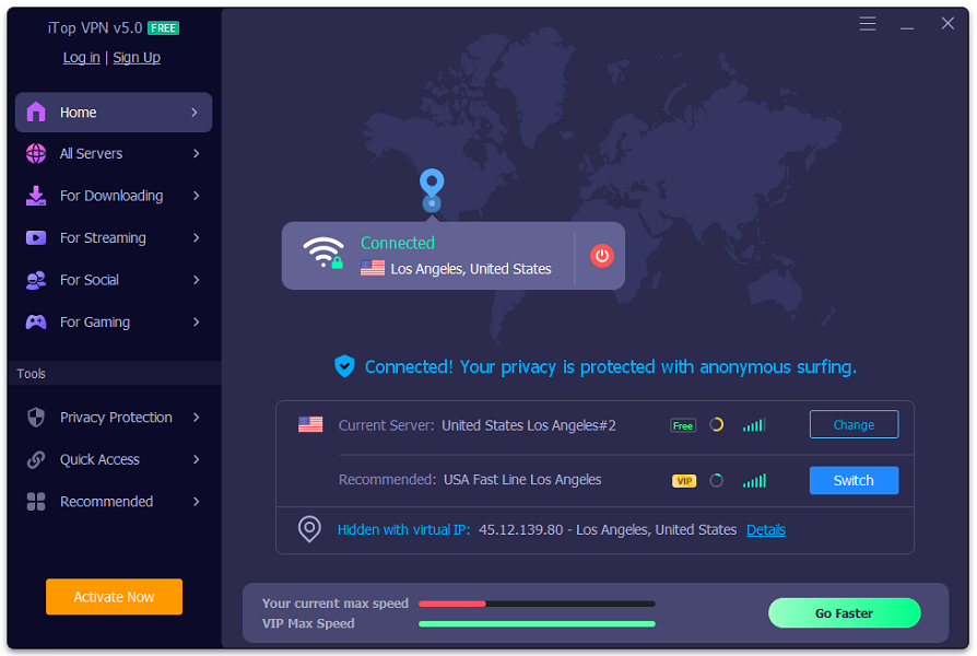With iTop VPN you get to enjoy Netflix content from servers spread across the globe with high bandwidth. Moreover, iTop VPN offers the following benefits