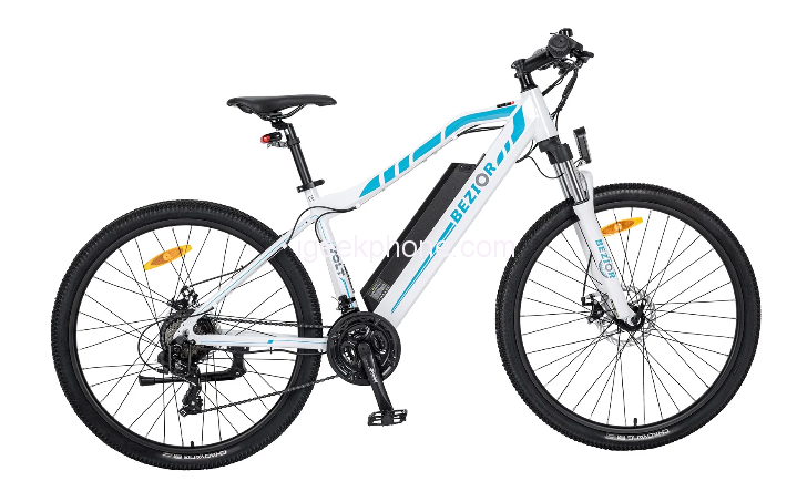 BEZIOR M1 is a 27.5- inch electric bike that features a 250W motor and 12.5AH lithium battery. The embedded battery offers riders a maximum speed of 25km/h, 35 degree grade ability, and 80km cruising range. In addition, Bezior M1 e-bike is an ideal bike for short trips, shopping, commuting, and more.
