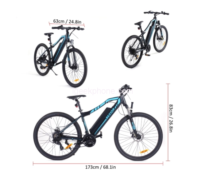 In terms of design, this electric bike is constructed from high-strength aluminum alloy material that can carrier up to 120kg weight. Most users of this bike regards the front suspension system and anti-slip wheels to be one of the top specifications of this bike from Bezior.