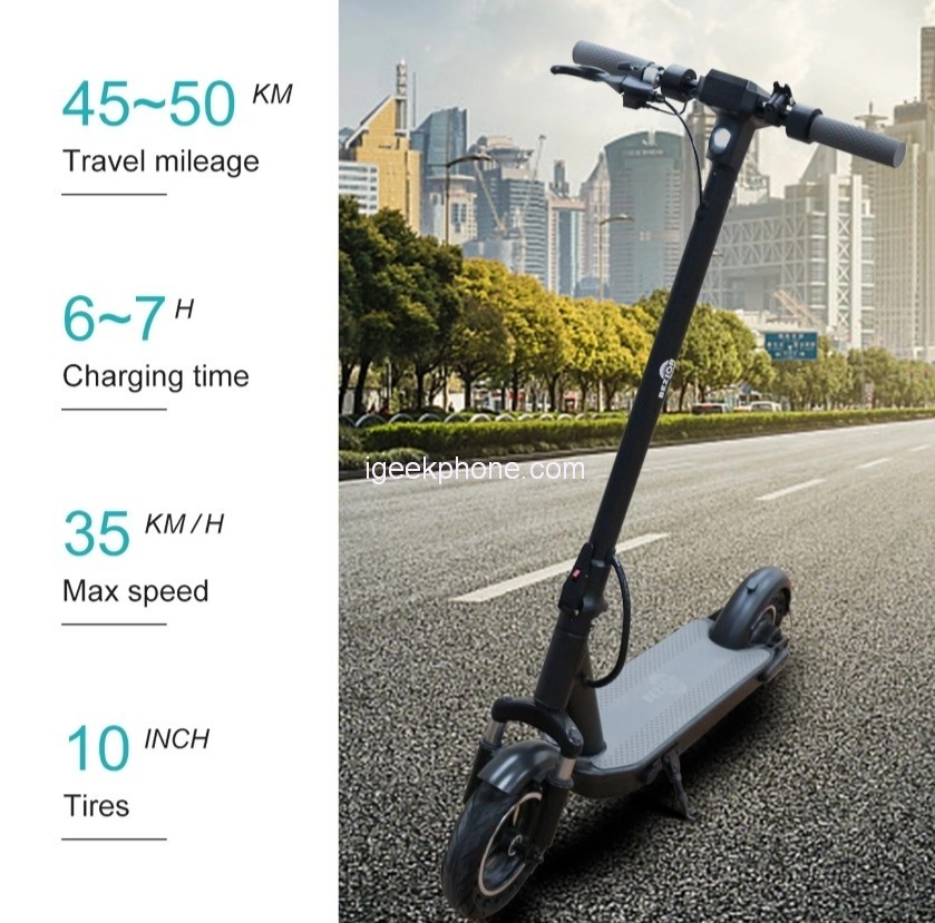 BEZIOR S500 MAX Folding Electric Scooter endeavors to consolidate ergonomics with power. It is really a collapsing model (it folds in only 3 seconds), The wheels are 10 inches, so you can travel serenely even on to some degree lopsided ground like the clearing of notable focuses. Its body is made of aluminum to invigorate and daintiness and can acknowledge a rider who gauges up to 120 kg, and weighs around 20 kg. For security, notwithstanding the previously mentioned circle brakes, wealso have a 2 Watt front light that can remain on for around 125 hours without influencing the independence of the vehicle and a red back light that signs to slow down. It likewise has IPX4 security, so it is impervious to water sprinkles and can be utilized in the downpour.