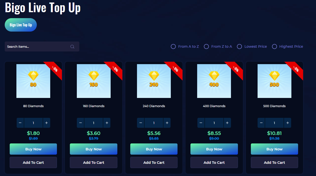 When it comes to topping up safely and affordably, IGGM.com has built a reputation as one of the most reliable platforms. It offers a wide range of Bigo Live Diamond packages — from as little as 80 Diamonds to as much as 24,000 — all at discounted prices.