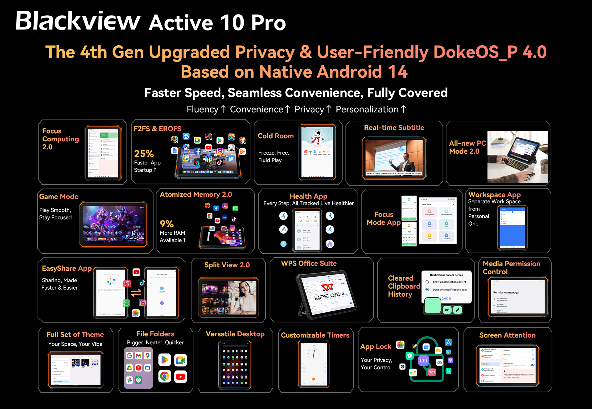 This revolutionary flagship rugged tablet, Blackview Active 10 Pro, boasts powerful features that meet all the core requirements of a smart tablet. Certified with military-grade MIL-STD-810H, IP68, and IP69K, it excels in waterproof, dustproof, and shockproof capabilities, ensuring reliable performance even in extreme temperatures.