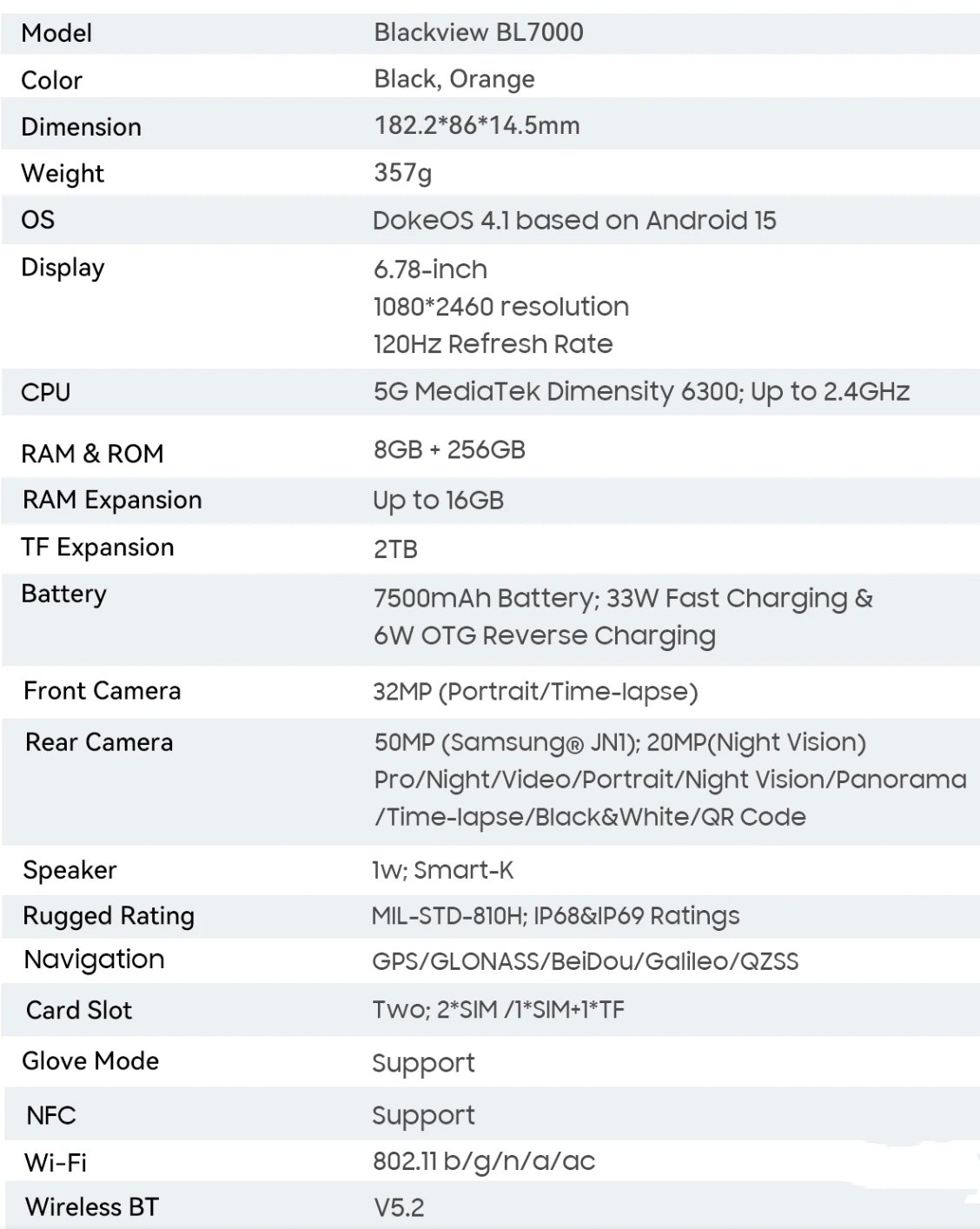 Igeekphone News, May 12th: Blackview has released the BL7000 rugged phone. This phone is equipped with a 7500mAh battery, supports 33W fast charging, and is fitted with a 20-megapixel night vision camera.