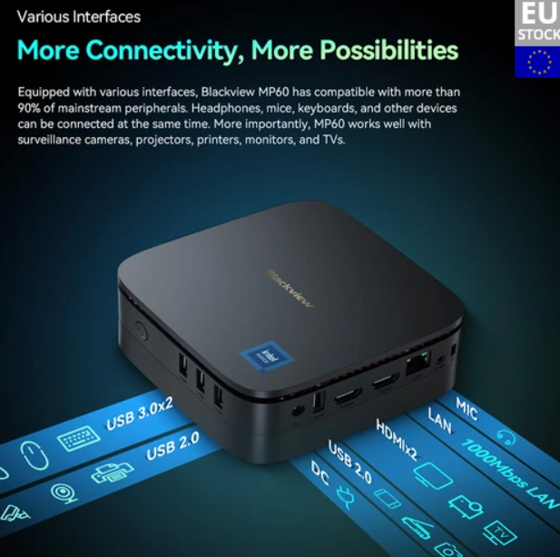 Despite its compact size, the Blackview MP60 Mini PC is packed with all the necessary ports and connectivity options you need to stay connected and productive. With HDMI, USB, and LAN ports, you can easily connect to external displays, peripherals, and networks for enhanced functionality. Whether you’re working from home, in the office, or on the go, this mini PC offers the flexibility and convenience you need to stay connected and productive.
