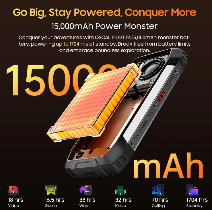 - Powerful Battery: Equipped with a massive 15,000mAh battery, the PILOT 1 sets a new standard for battery life in smartphones. This powerhouse ensures that you can stay connected and use your device for extended periods without the constant worry of finding a charger. Plus, with 33W fast charging capabilities, you can quickly juice up your device when needed.