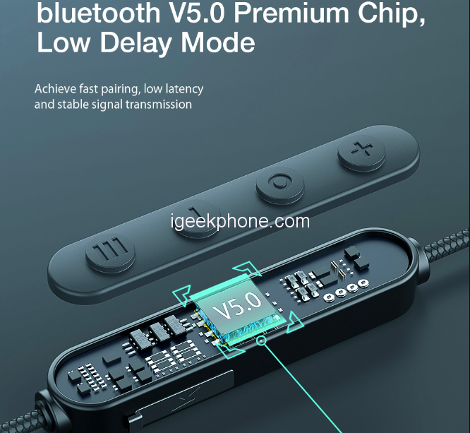 In the middle of the cable you will find a controller with control buttons, which also hides the Bluetooth 5.0 antenna used to connect to your headphones, while of course, we have support for all known profiles HSP/HFP/A2DP/AVRCP but also AAC and SBC decodings.