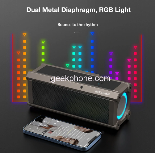 The BlitzWolf BW-WA3 is equipped with quad drivers and dual diaphragms that deliver a powerful and immersive audio experience. The speaker also has a deep bass feature that enhances the low-frequency sounds and makes the music sound richer and more vibrant. Additionally, the speaker has an impressive 100W output that provides clear and loud sound even in noisy environments.