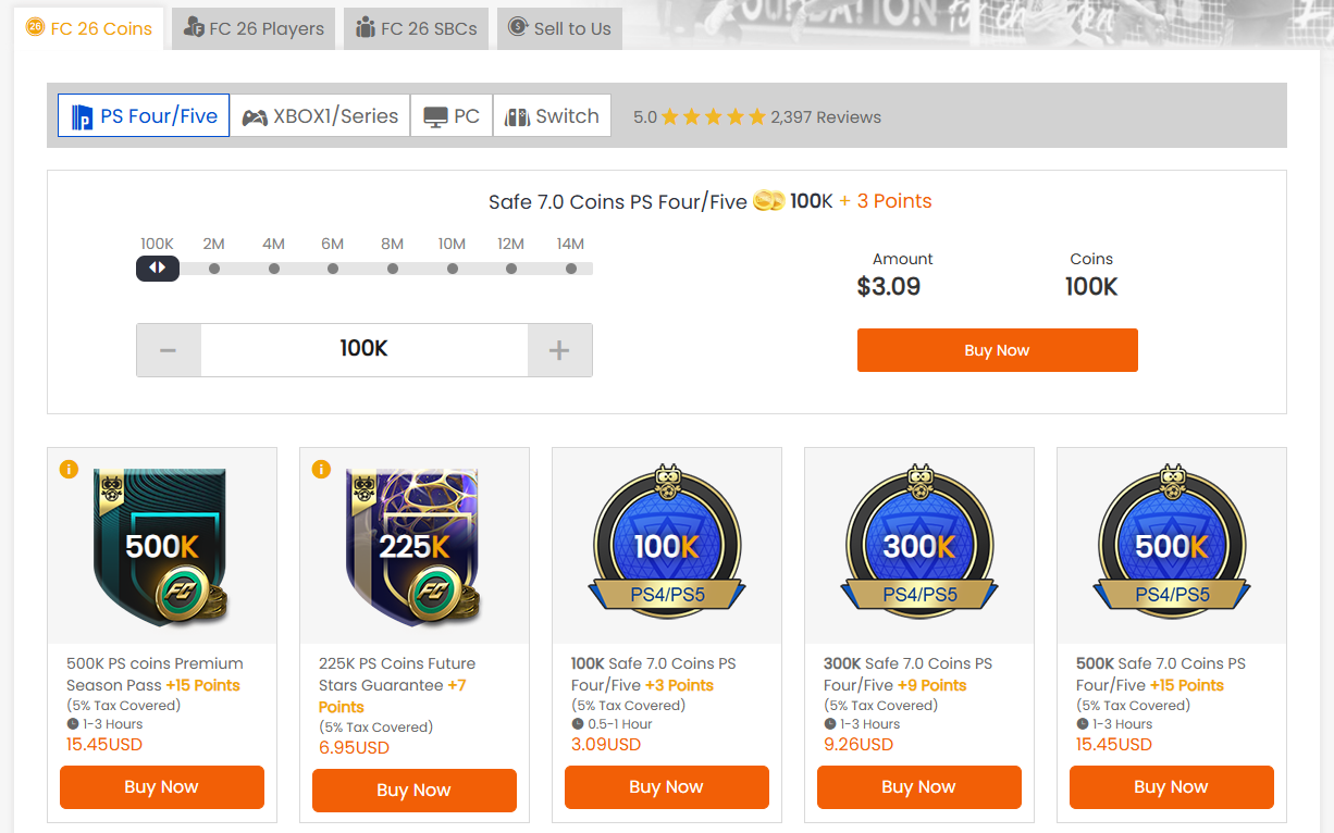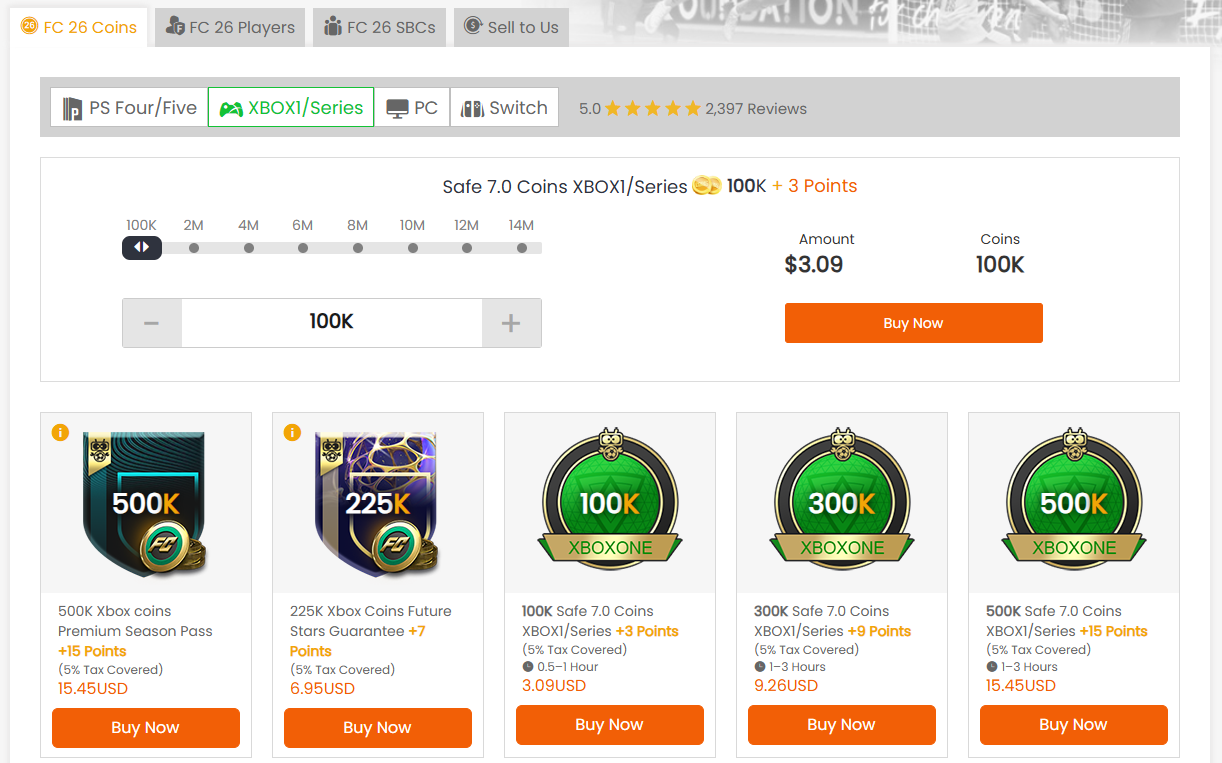 Beyond coins, access FC 26 Players and complete SBCs efficiently. Sell excess items back to us for instant credit. Every purchase includes reward points, 5% tax coverage, and secure transfer protocols: no account risks, no delays. Order Now – Select your platform, choose your coin package, and complete checkout. Your FC 26 coins arrive within hours.