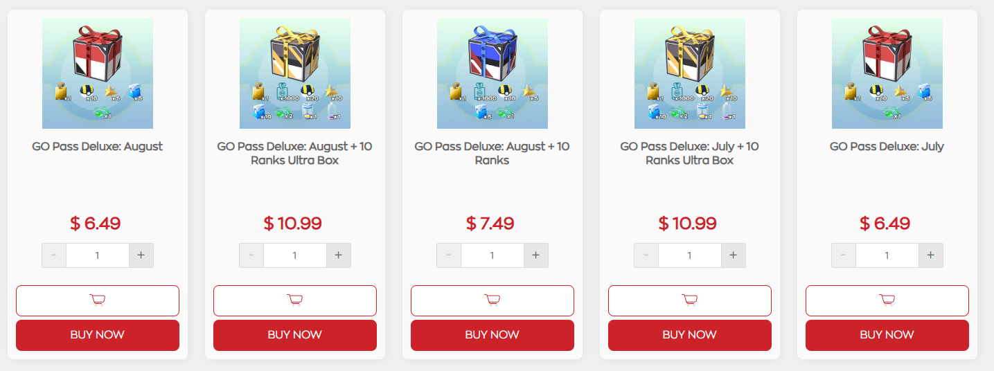 - GO Pass Deluxe: July + Ultra Box + 10 Ranks – $10.99