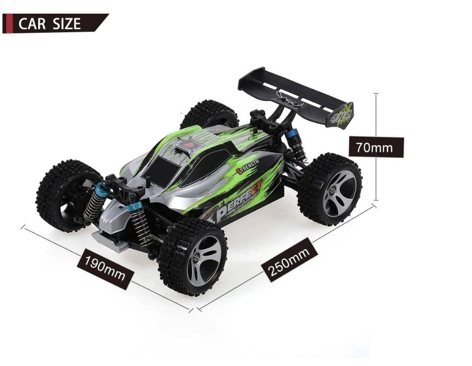 WLtoys A959-A RC Car features a forward, backward, turn left/ right and acceleration functions to enable users bet the best usage experience. In order to improve the performance of this toy car, it possesses a 2.4GHz control system with full proportion, four-wheel independent suspension system and strong shock absorbers also.