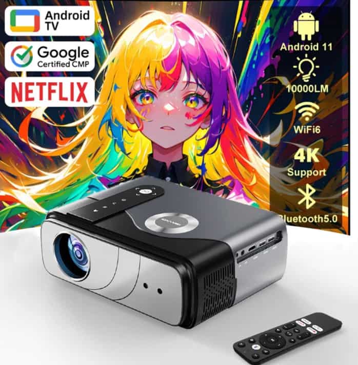 Google’s Android TV 11: Access thousands of apps directly from the projector via Wi-Fi. Stream Netflix, Disney+, YouTube, Prime Video, and more right out of the box (subject to app availability and updates).