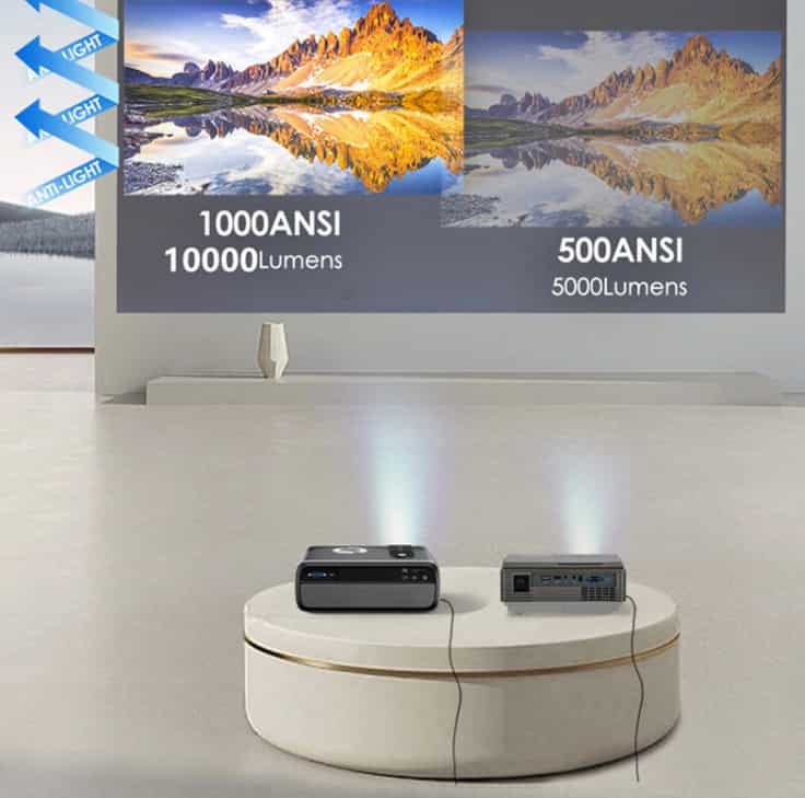 10,000 Lumens High Brightness (LED Source): While real-world ANSI lumens will be lower (typical for LED projectors), this high-lumen rating ensures vibrant, watchable images even in moderately lit rooms. For best results, use in dim or dark environments.