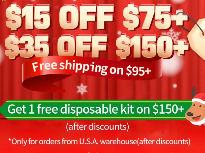 32.02% off Coupon code: XMAS20 Product: 20% off Sitewide Christmas Sale VapesourcingDiscount price: CN-SZ/USA Warehouse