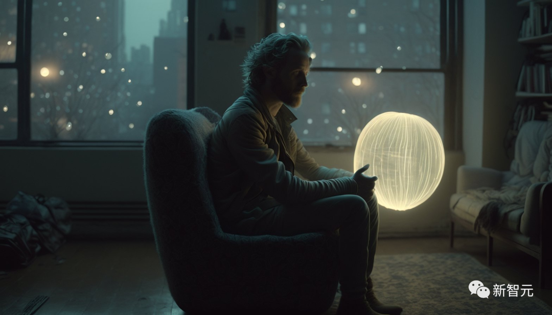 prompt is “imagine sci-fi film still, medium shot, centered, side-angle view, a man sitting on a chair, holding a glowing orb in his hands, living room, new york, 4k –ar 16:9 “(Think science fiction film still, medium, center, side Angle view, a man sitting in a chair, holding a glowing orb in his hands, The Living Room, New York, 4k — -AR 16:9).