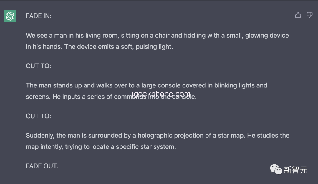First, say to ChatGPT, “Write me a script that generates a nine-second video made up of three three-second clips. The story is about a man in his living room, and it’s going to be science fiction themed.”