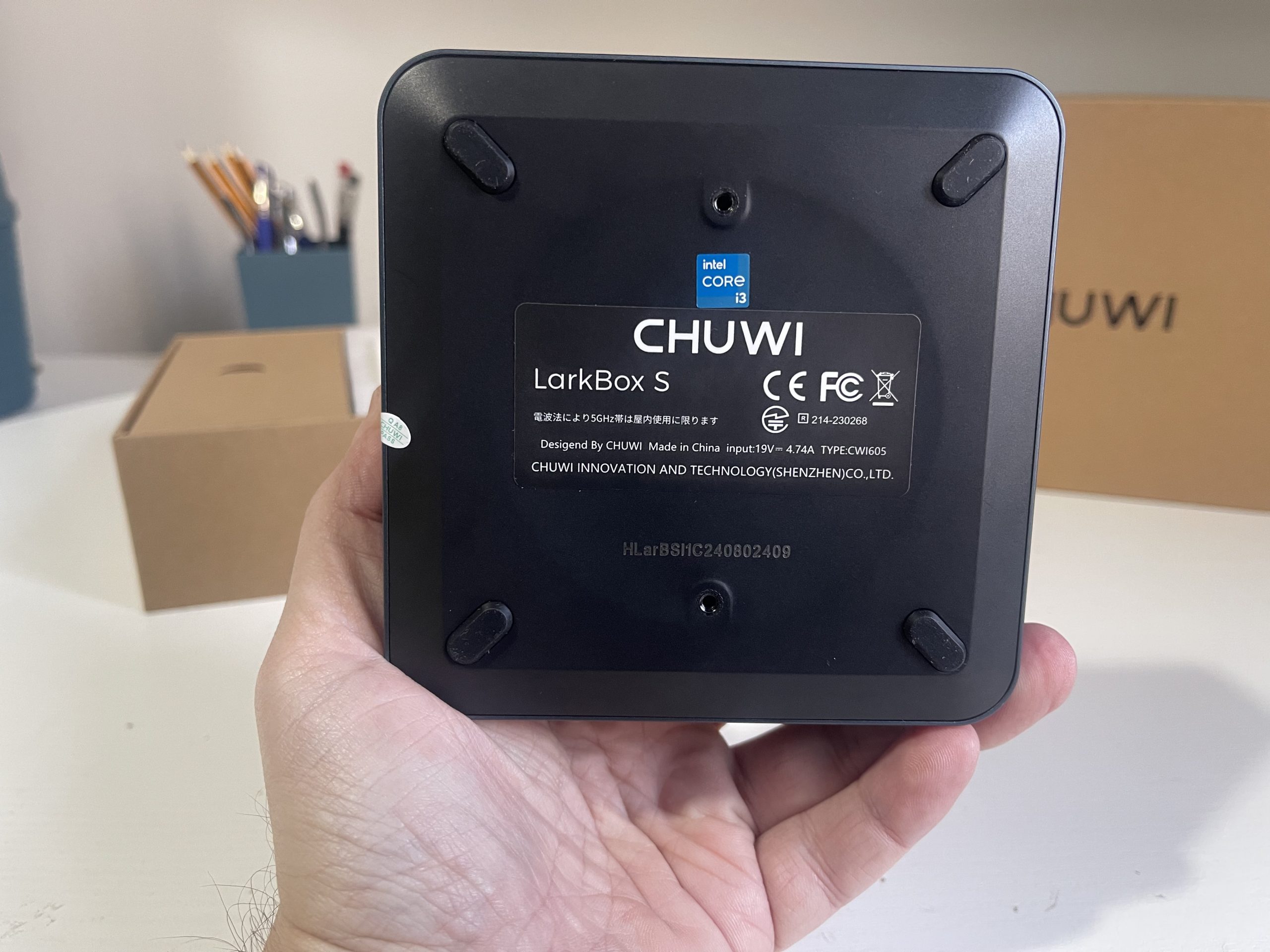 - Chuwi LarkBox S Mini PC – The main unit with a sleek and compact design.