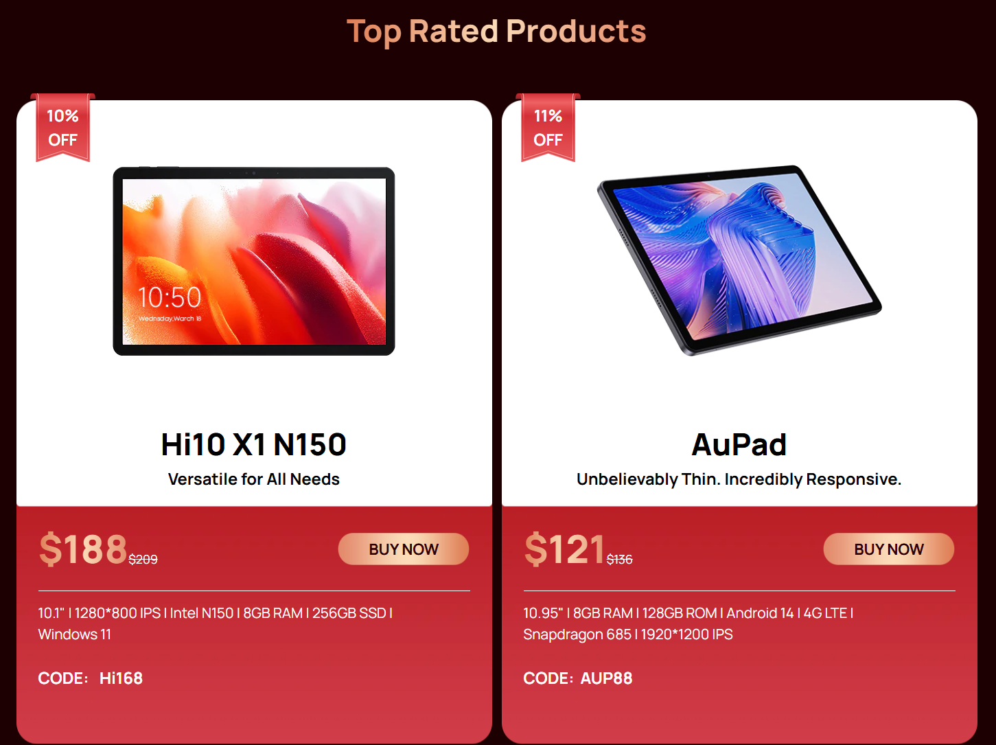 Chuwi Hi10 X1 N150 ($188 → $209; code Hi168): A budget‑friendly 10.1″ tablet PC with 8 GB RAM.