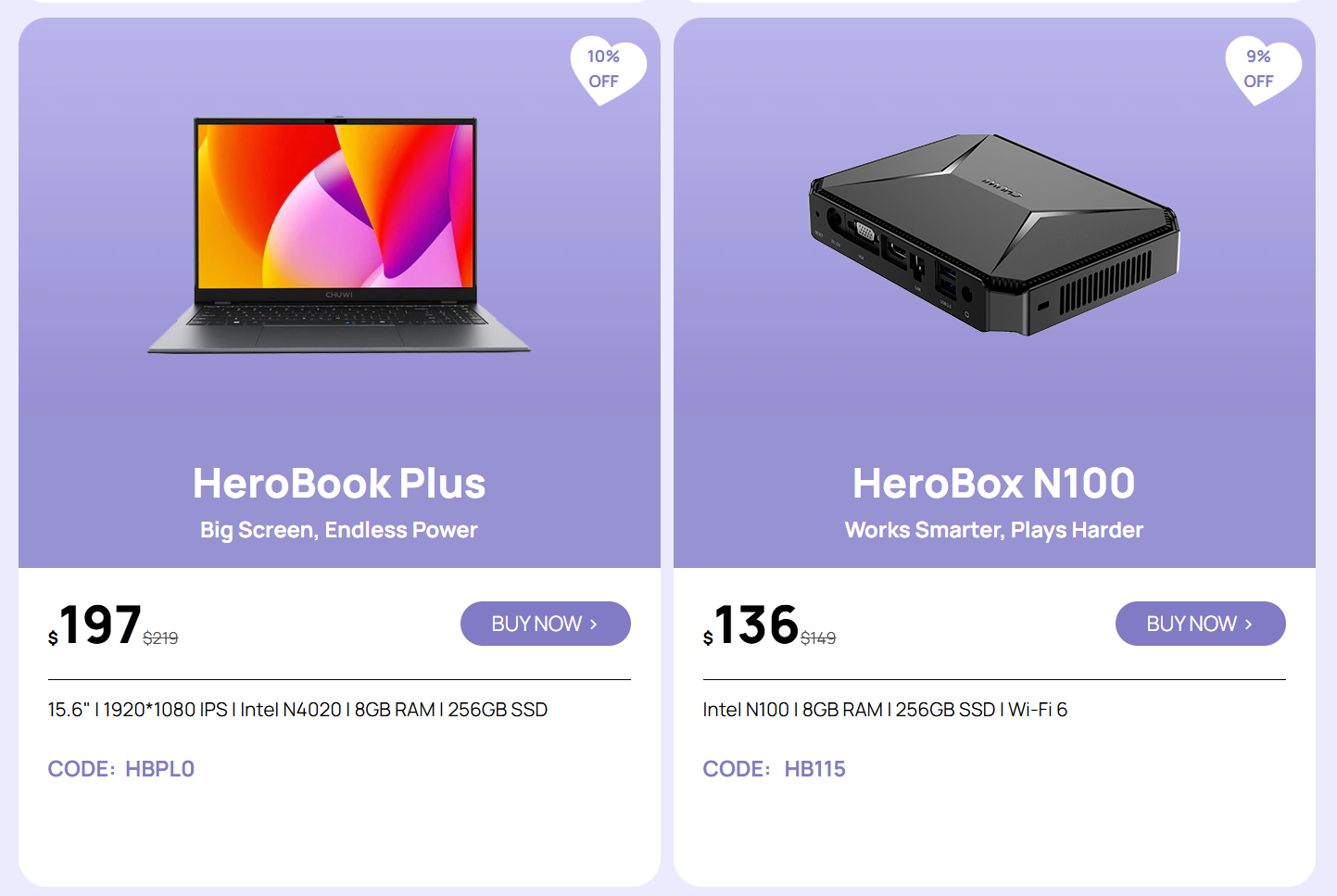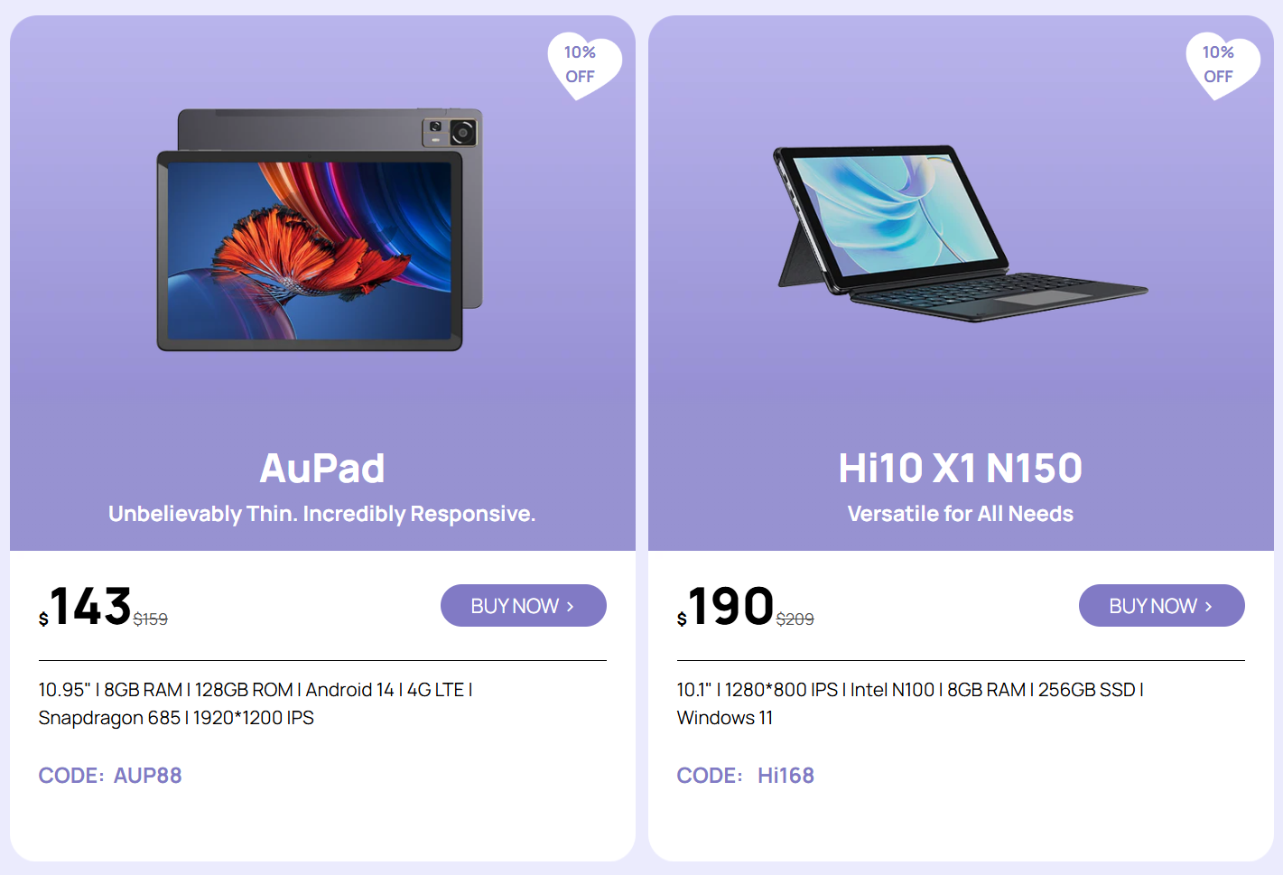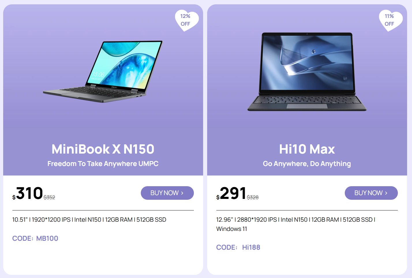 Other Highlights: The Hi10 Max (12.96” Windows tablet), HeroBox N100 (affordable mini PC), and UBox (Ryzen 5-powered desktop) also offer significant discounts.