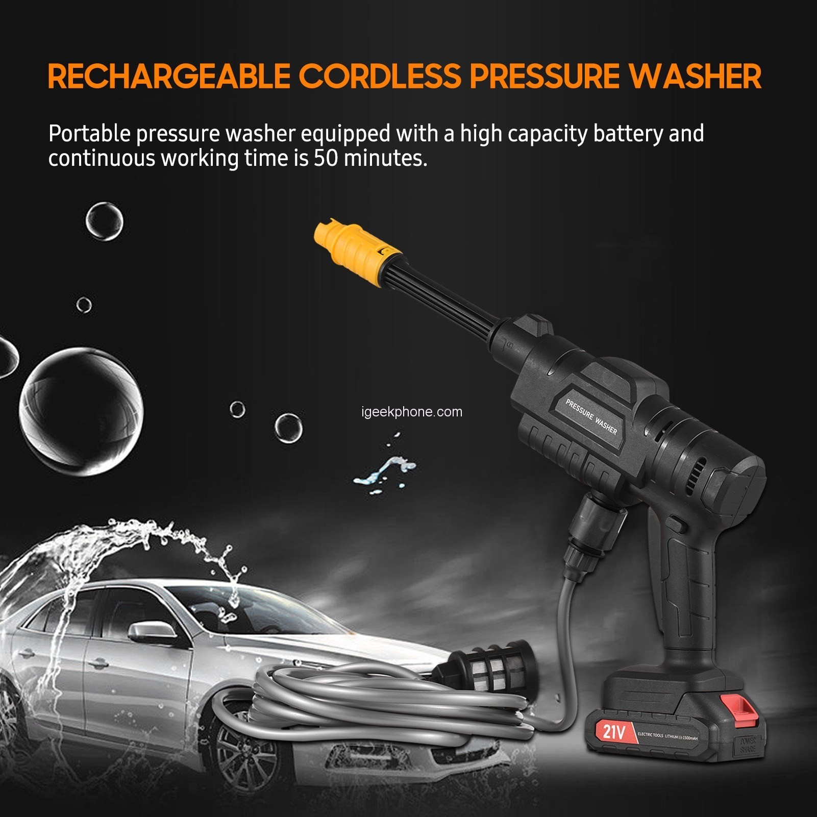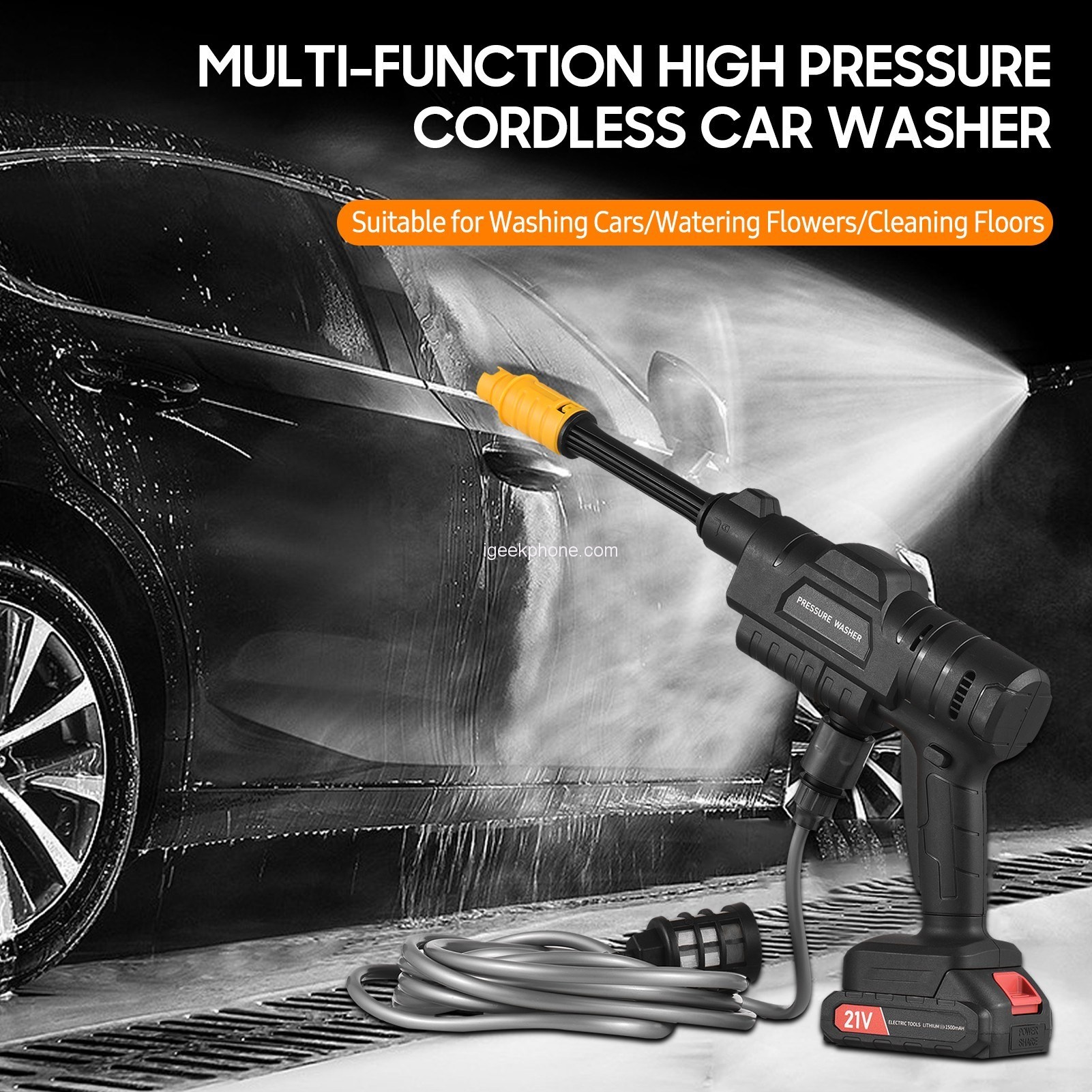 In conclusion, the Cordless High-Pressure Washer Gun is a game-changing tool for all your cleaning needs. Its design is both stylish and functional, while its features deliver impressive power and versatility. Whether you need to wash your car, maintain your garden, or clean hard-to-reach areas, this pressure washer has you covered. Say goodbye to the limitations of traditional washing machines; the Cordless High-Pressure Washer Gun is lighter, more portable, and designed to keep up with your fast-paced life.