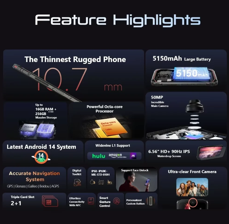 1. Rugged and Durable Design: Built to withstand the elements, the DOOGEE Blade 10 Pro features an IP68 and IP69K rating, ensuring it is resistant to water, dust, and extreme conditions. Whether you’re hiking in the rain or working on a construction site, this smartphone is engineered to endure tough situations.