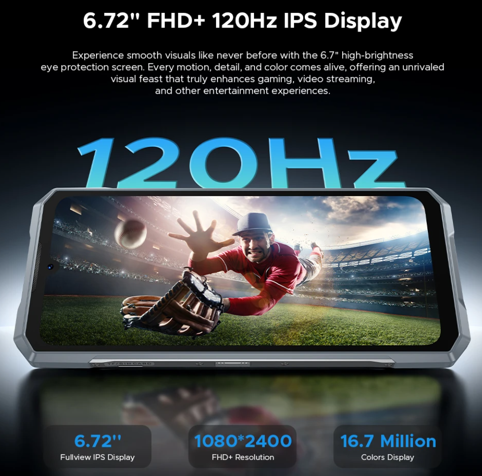 The DOOGEE Blade GT Play doesn’t shy away from its bold personality. With a robust IP68/IP69K and MIL-STD-810H certified design, it’s built to endure dust, drops, and even splashes—perfect for outdoor enthusiasts and on-the-go professionals. Despite its ruggedness, the phone retains a sleek aesthetic with its 6.72-inch FHD+ waterdrop display, offering vibrant visuals and a fluid 120Hz refresh rate for buttery-smooth scrolling and gaming.
