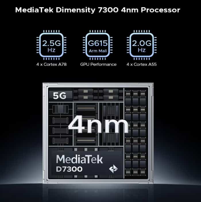 MediaTek Dimensity 7300 5G Chipset: Built on efficient 4nm technology, this powerful octa-core processor delivers excellent performance for gaming, streaming, and daily tasks while maintaining strong battery efficiency. Integrated 5G ensures blazing-fast connectivity.