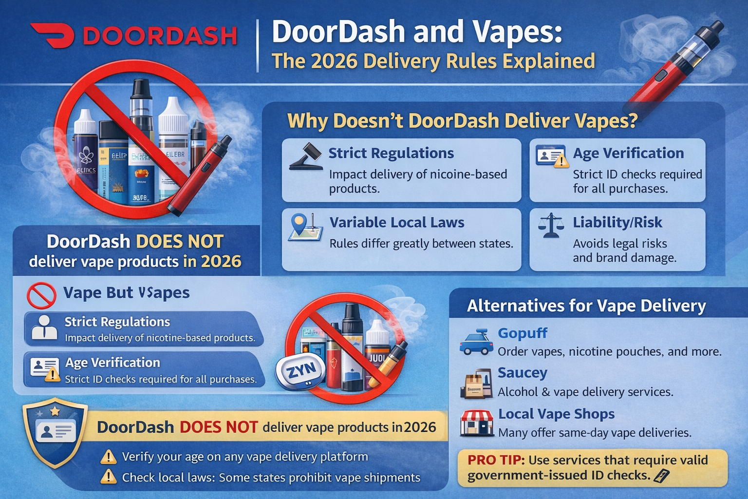 This shows that DoorDash can support age‑verified delivery categories, but vape products remain legally too complex to include.