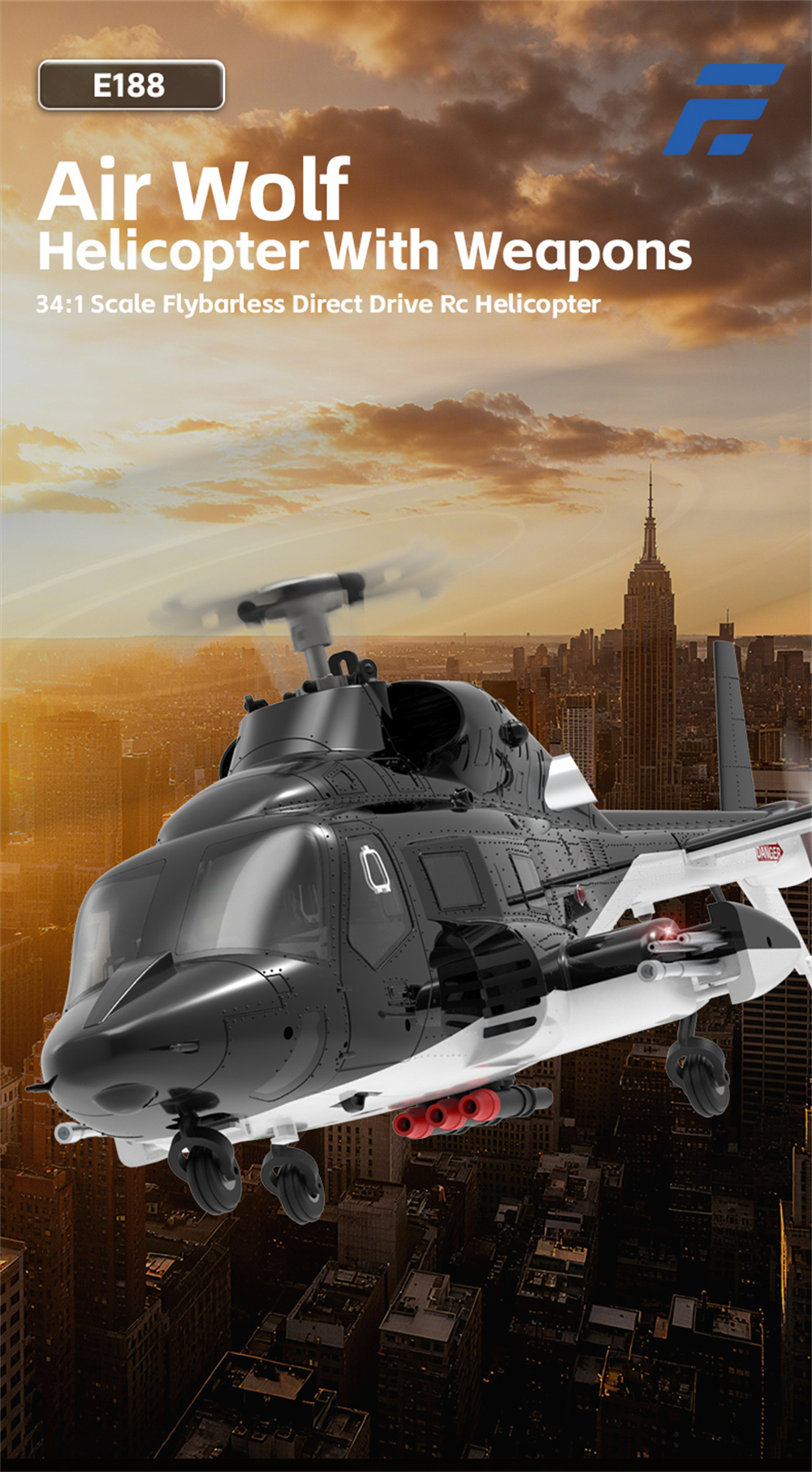 Right out of the box, the E188 commands attention. Dressed in sleek black with a 415mm body length and 375mm rotor diameter, it channels the aggressive, iconic silhouette of the classic AirWolf, that legendary helicopter we all grew up watching. It weighs in at just 310g, kept light thanks to high-strength composite materials that feel premium without the premium fragility. The nylon and carbon fiber composite blades aren’t just for looks, either; they’re flexible, impact-resistant, and built to handle the bumps that come with learning or pushing limits.